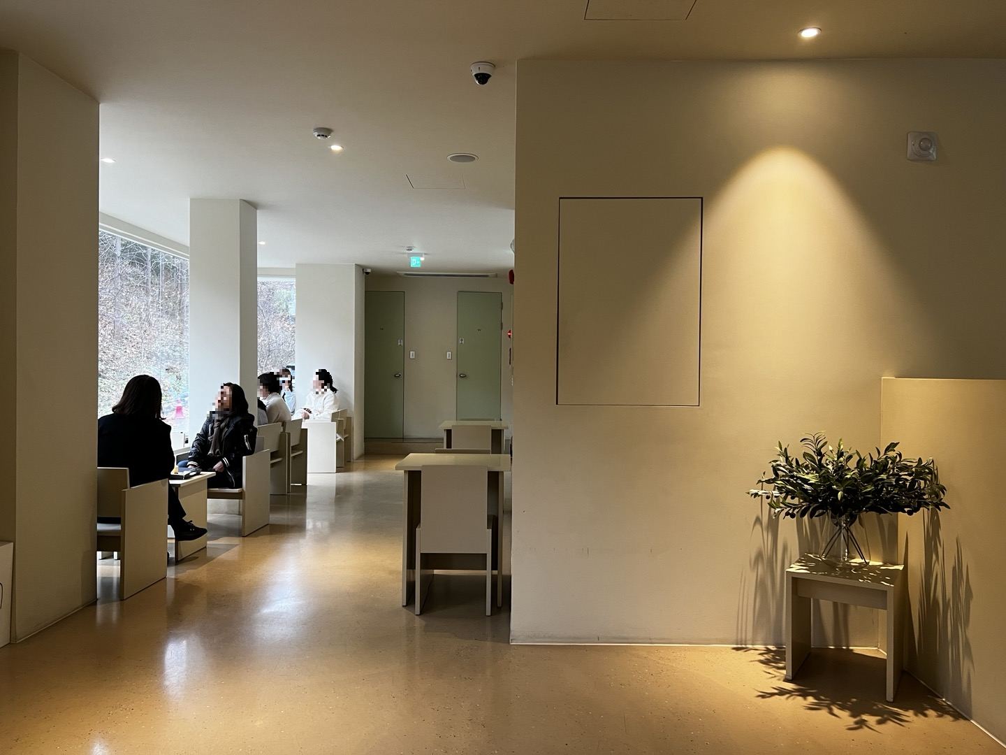 가봤던 과천 카페 중에서 공간대비 가장 손님이 적었던 카페였다. 지하에는 혼자 온 손님 한 테이블과 젊은 엄마들 한 테이블 뿐이였다. 물론 윗층의 공간이 창가로 보이는 바깥 풍경때문에 가장 인기가 많기 때문에 비교적 아래층이 손님이 적은것이긴 하지만 그래도 나름 멍하니 바라볼 수 있는 창가가 꽤 많았다.