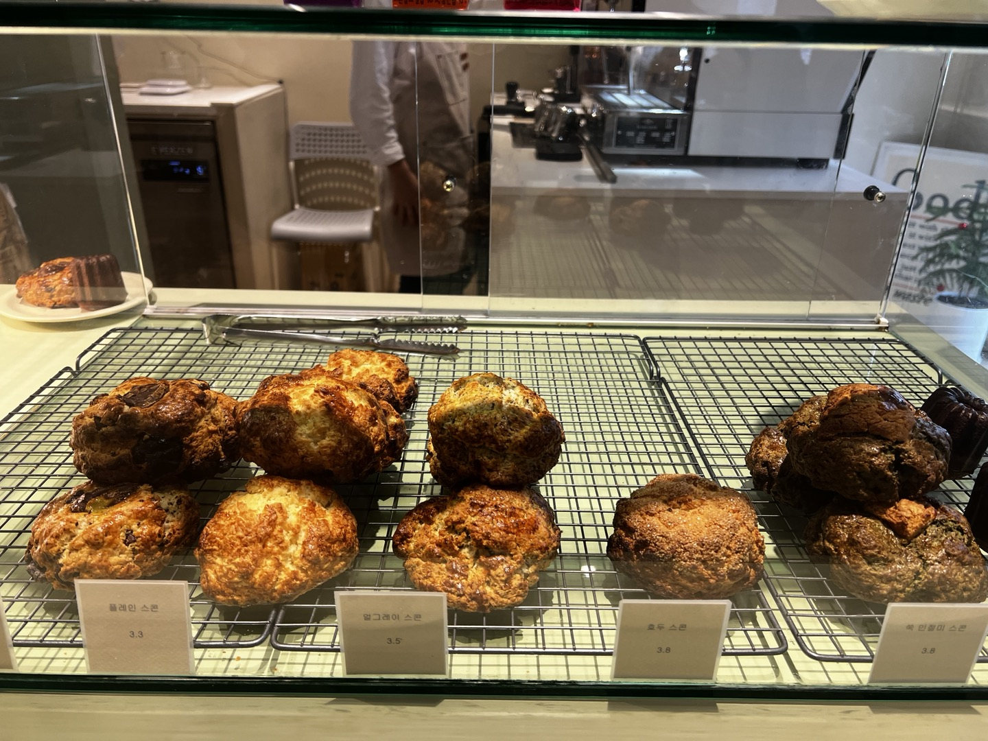 1층 입구로 들어서면 3-4테이블 정도 창가에 자리가 있고, 그 안쪽에 카운터가 있다. 스콘, 까눌레 그리고 치즈케이크를 만날 수 있다.