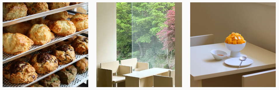 해가 어둑어둑 해지니 이렇게 좀더 서늘한 차가운 쿨톤의 무드가 느껴졌다. 아니 내 몸이 그냥 쿨해졌 던 것 일지도. 올라올 때 보니 담요와 방석이 구비되어 있었다. 꼭 이런것은 떠날 때 보이지. 다음에 오면 샌드위치와 따뜻한 아메리카노를 시켜서 담요를 챙겨 창가에 앉아서 시간을 보내고 싶다. 빵이 메인인 카페가 아닌, 조용하고 맛있는 과천 디저트 카페를 찾는다면 이곳 카페 언트를 추천한다.