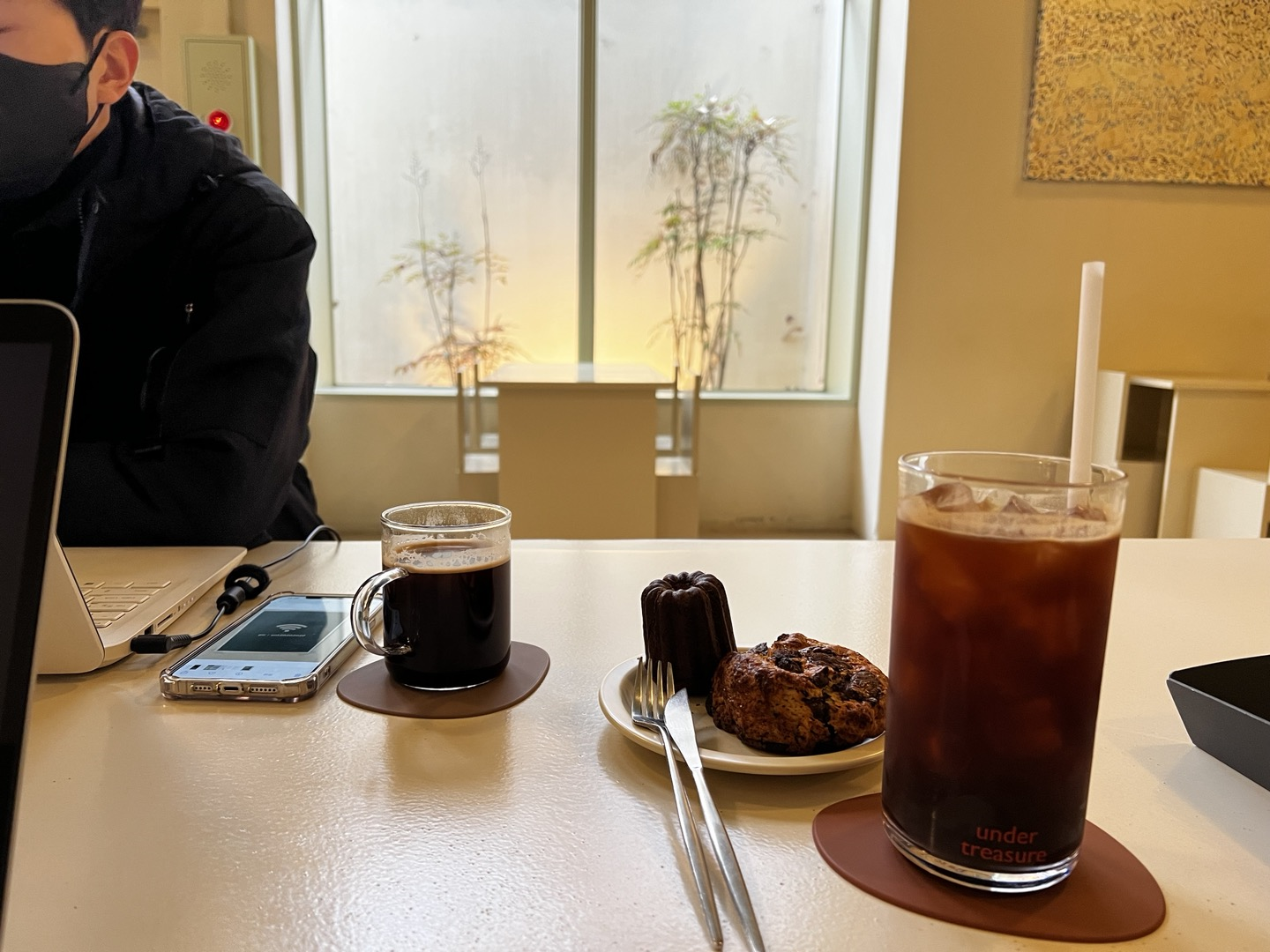 커피도 진한 깊이감이 맛이 좋았고, 까눌레는 내가 좋아하는 겉바속촉이였다. 초코 스콘은 먹으려고 포크를 대면 바스스 부서져 내리는 여린 친구였어서 입으로 들어가는 것 70% 흘리는 것 30% 즉, 2개를 시키면 된다. 껄껄껄