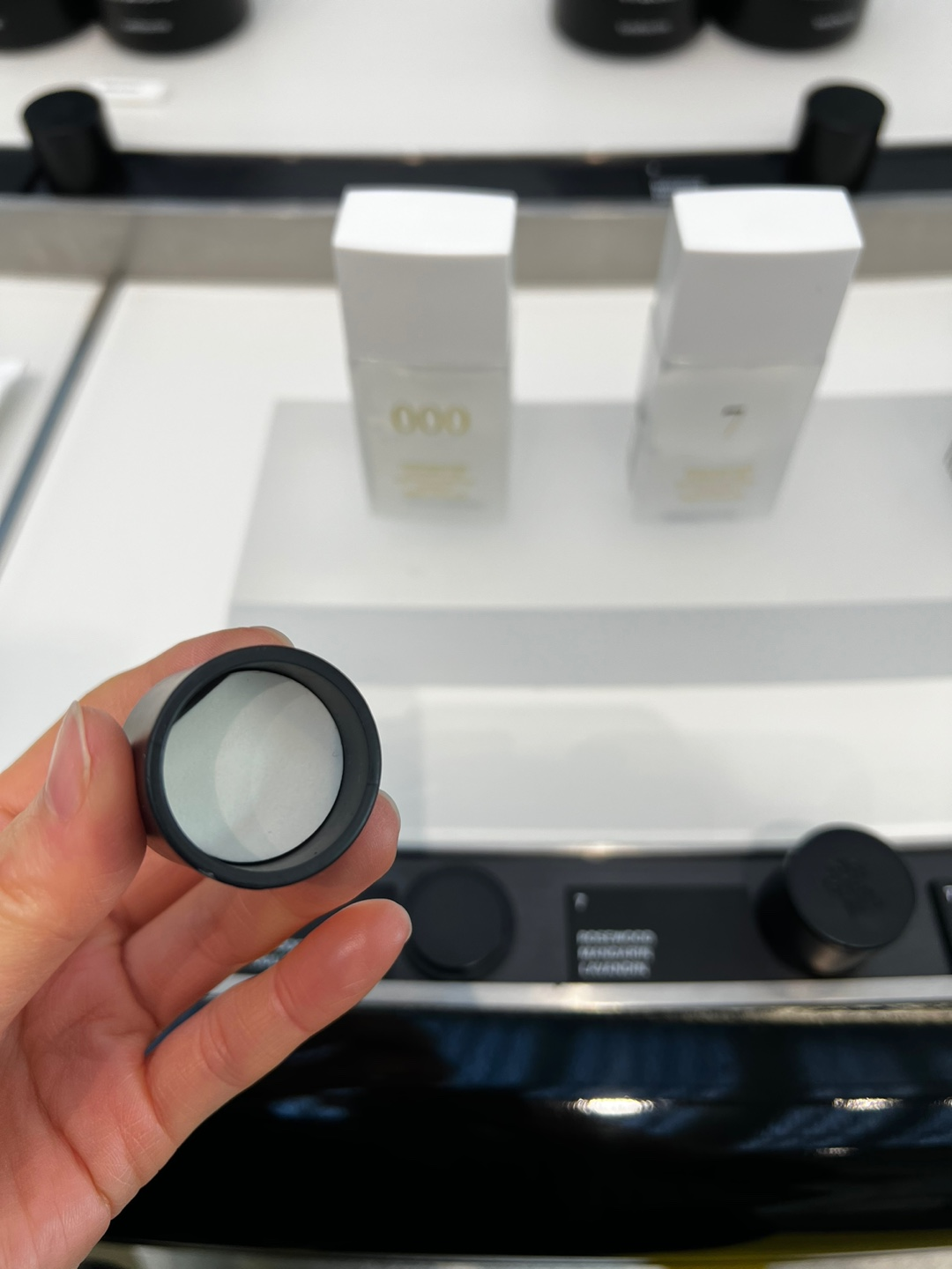1층 입구에 들어서면 좌측에 제품이 진열되어있고, 직원분께서 향 설명을 해주시고 원하면 퍼퓸밤을 발라볼 수 있다. 이미 향수에서 출시된 향이기 때문에 향을 알고있어서 제형을 확인하기위해 버가샌달 BERGA SANDAL로 선택했는데, 향을 맡아보고 결정해달라고 고집을 부리셔서. 향을 알고있어요 했더니 바로 스파츌라로 퍼퓸밤을 떠서 발라주셨다. 발림성도 좋았고, 흡수도 빠르고 바르고 난 뒤 잔여감도 깔끔했다.