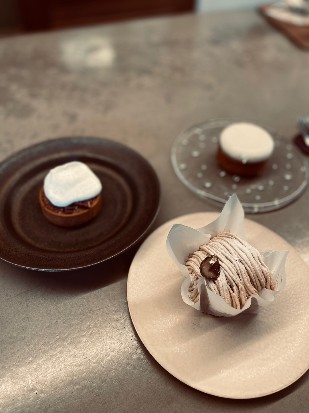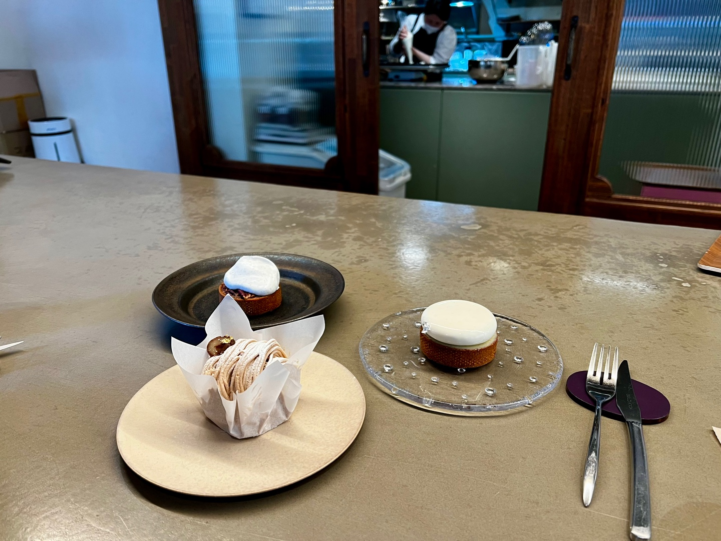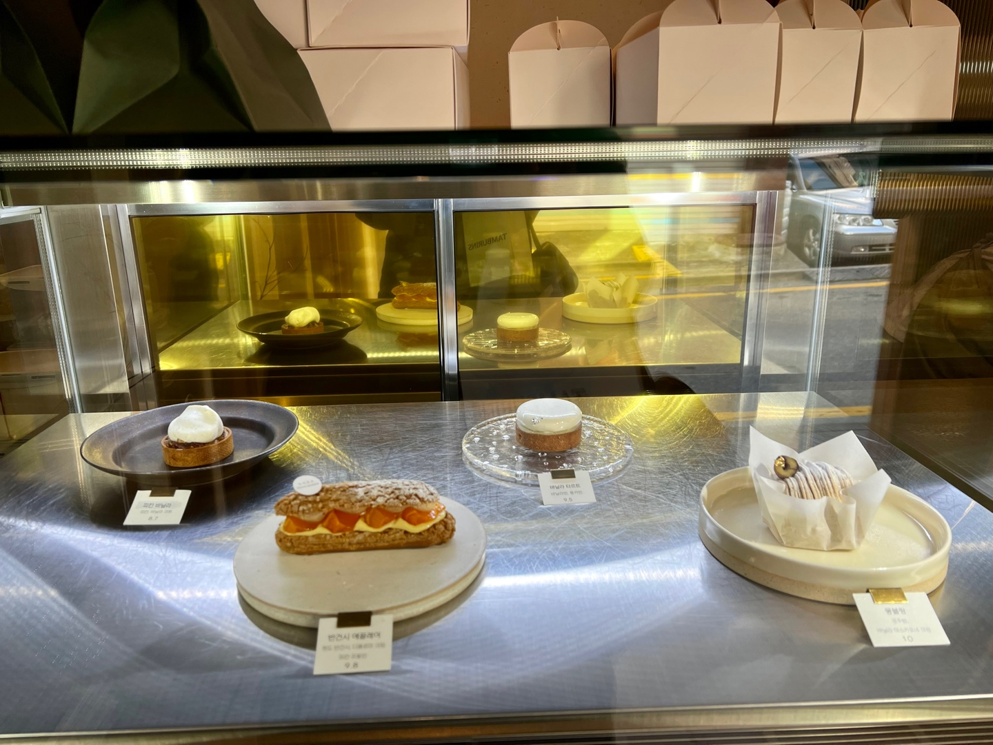 왼쪽 쇼케이스 안에 있는 디저트가 메인이고, 일부는 제철과일을 이용한 디저트로 계속 변경된다고 한다. 그래서 몽블랑, 피칸파이 등 구움과자를 좋아하는 좋아한다면 계절을 바꿔가며 한번씩 방문해도 좋을 것 같다.