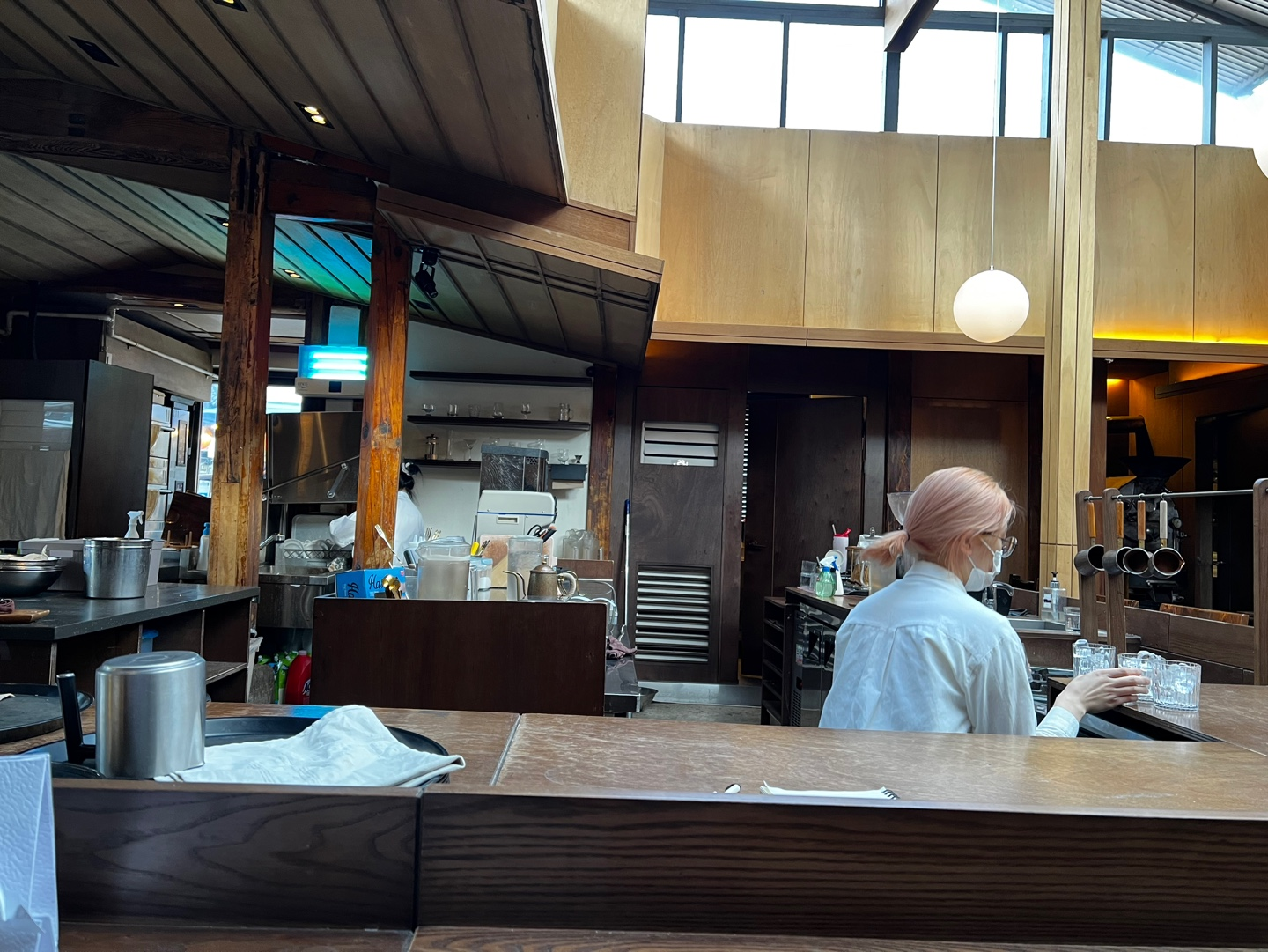 한 한두시간정도 스몰토크 빅토크 하다보니 손님들이 거의 다 빠졌다. 그러고 나서 보니 카페 온의 무드가 보이기 시작했다. 거북선 같은 너낌의 천장 사이로 보이는 하늘. 노 대신 포크를 저어라~