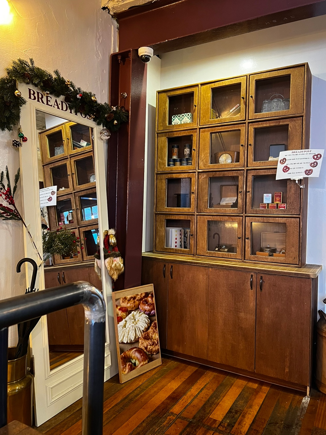 이 문을 열고 2층 계단을 따라 올라가면 따스한 우드로 인테리어되어있는 용산 브레디포스트를 만날 수 있다.