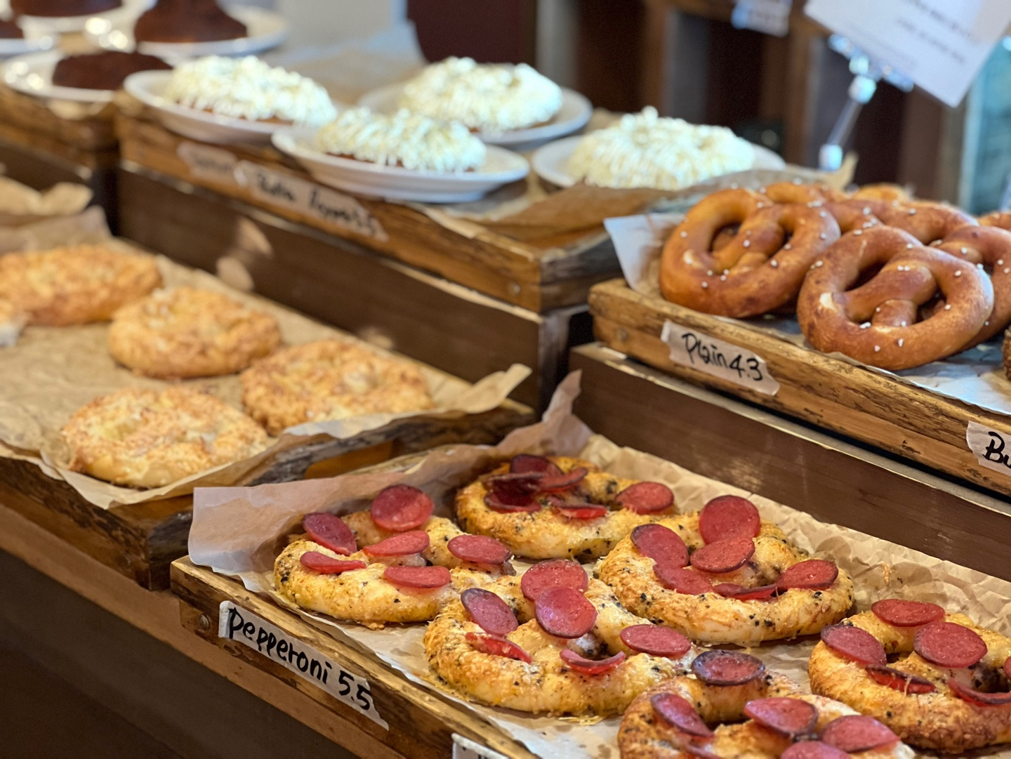 용산 프레즐 맛집인 만큼 다양한 종류의 프레즐이 진열되어 있었는데, 그 중 세가지를 포장했다. 짭쪼롬한 매력이 있는 플레인과 남편이 선택한 페퍼로니, 고소한 풍미를 가진 메밀.