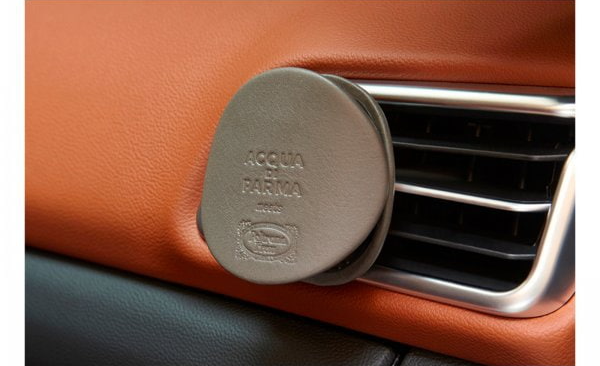 유명 디자이너 듀오 감프라테시(GamFratesi)가 디자인한 아쿠아디파르마 차량용방향제는 이탈리아 고급 레더 브랜드 폴트로나 프라우(Pelle Frau®)의 협업으로 제작된 케이스이다. 가죽 케이스로 덮게를 씌우고, 마그네틱 지지대를 사용하여 차량 통풍구에 꽂아 사용한다.